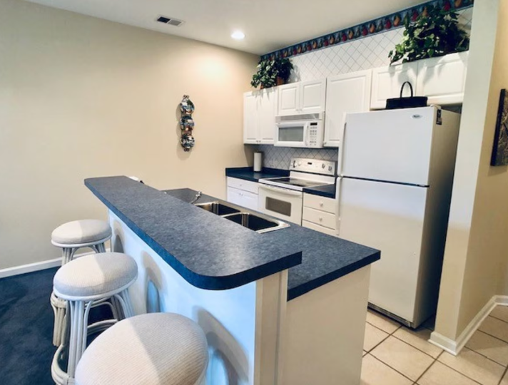The condo’s decor is beach-inspired with, plenty of comfortable furnishings and all the essential amenities of home, including air conditioning, three flat-screen TVs with cable, and WiFi for your communication needs. Guests can prepare delicious home-cooked meals in the unit’s bright fully equipped kitchen, complete with all the vital cooking appliances.