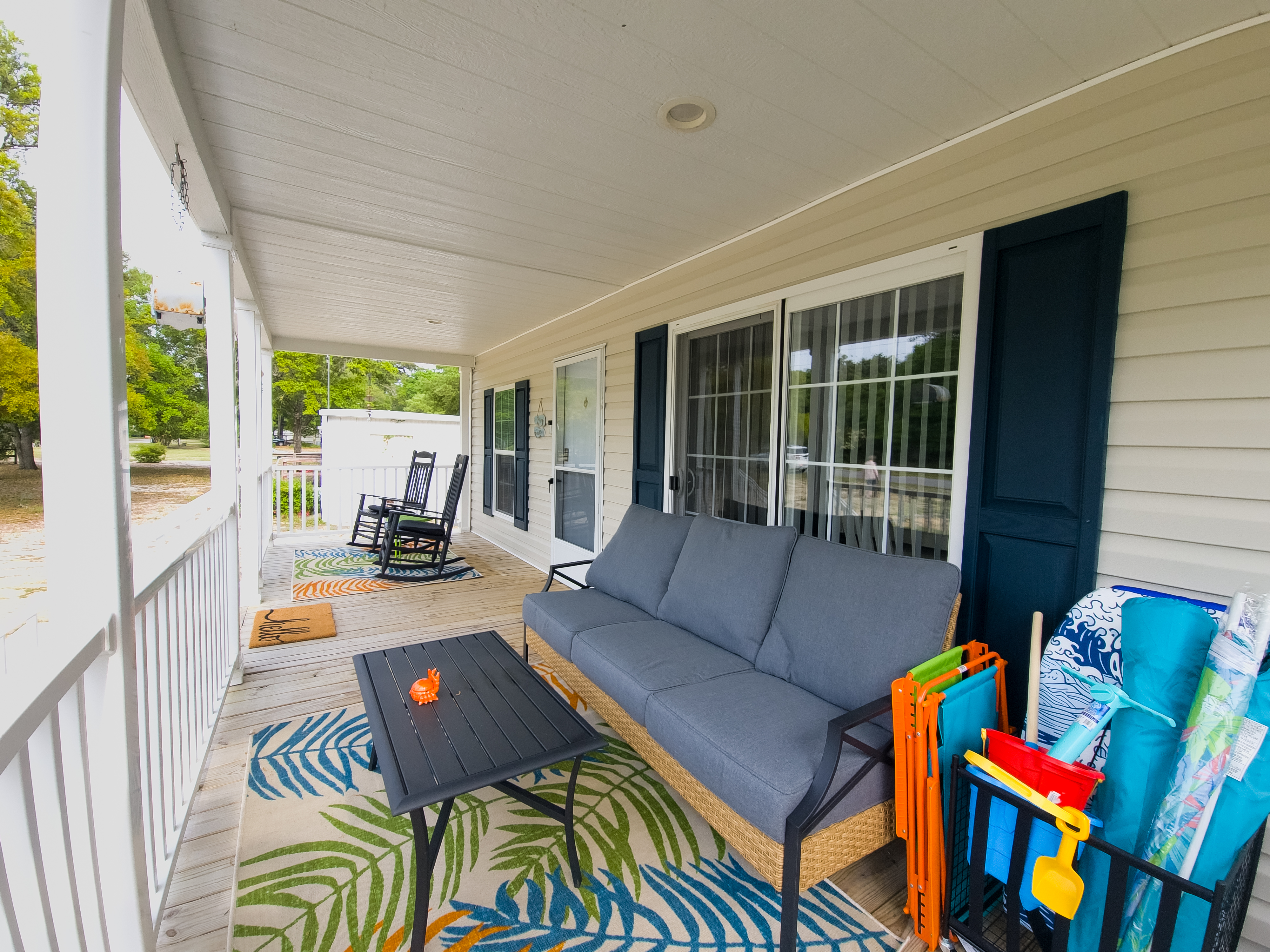 This large beach home is very equipped with anything you need to enjoy your vacation at the beach which is just 8 minutes away. Also close to so many golf courses you won’t believe! Open floorplan plus a large front porch for just relaxing and hanging out. Large lawn, fenced area for keeping fur babies safe and sound. This neighborhood is peaceful and quiet. Great place for adults and children to ride bikes!